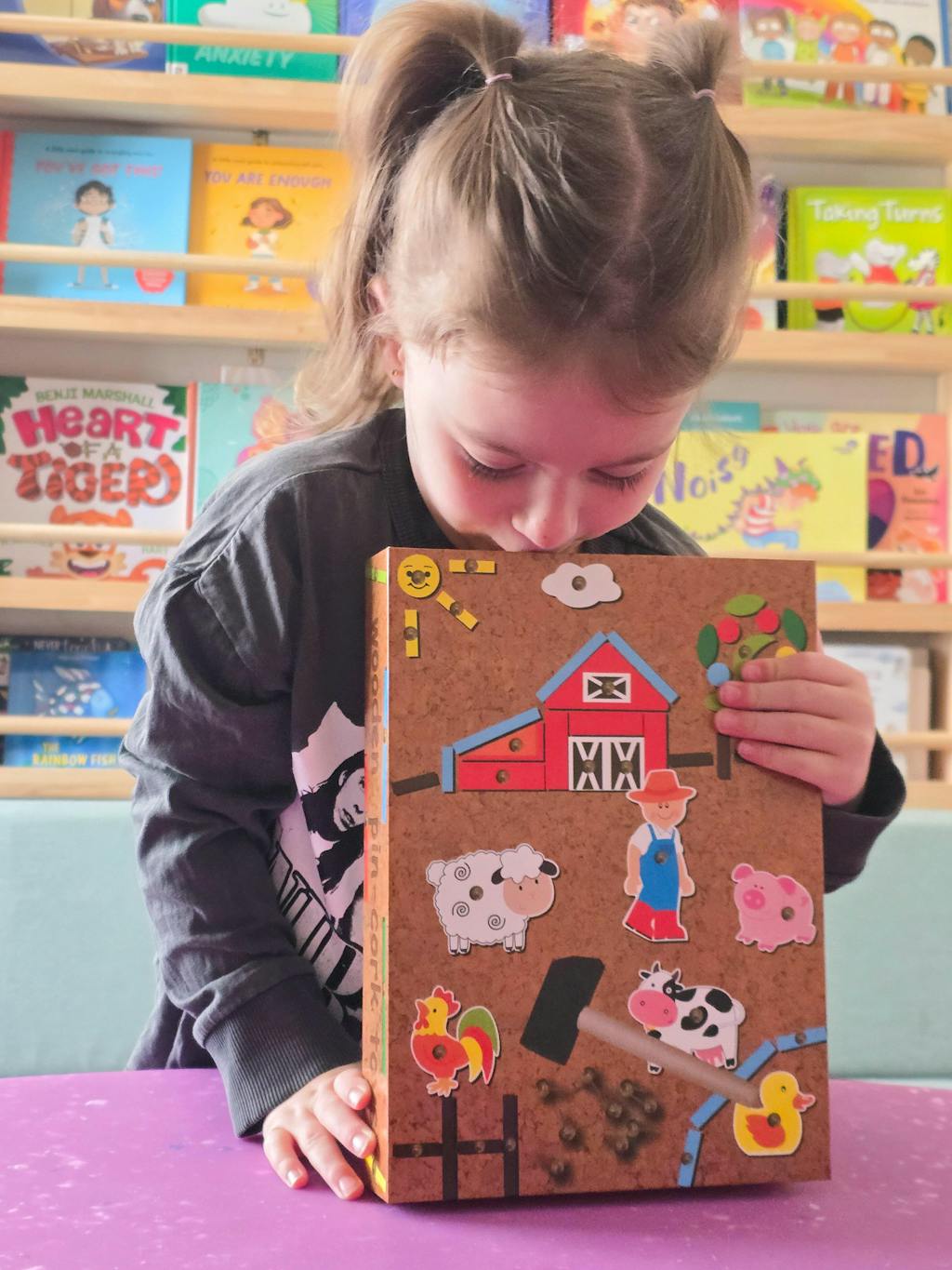 Elevate playtime with our exquisite Farm Tap A Shape Set. Crafted with elegance and featuring a vibrant array of brightly coloured wooden pieces and robust cardboard animals and farmer, this set promises hours of immersive entertainment for your little ones.
