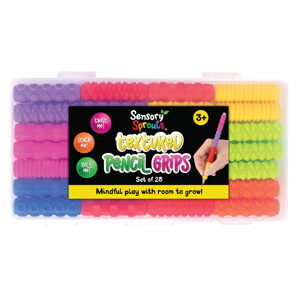 Make writing more comfortable, engaging, and sensory-friendly with the Sensory Sprouts Textured Pencil Grips- set of 28 . Designed for developing writers and students with sensory needs, these grips feature soft, tactile textures that provide gentle feedback while encouraging proper finger placement and pencil control.