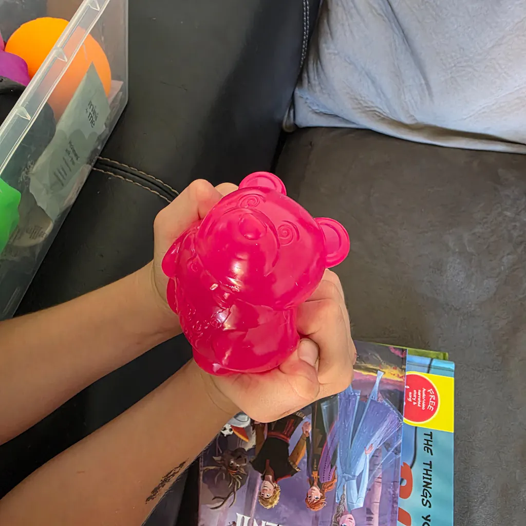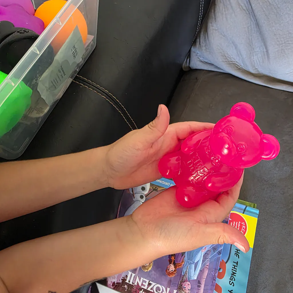 With its wacky eyes and cute little bowtie, this jumbo gummy bear brings personality to every squeeze. The soft, gooey texture offers deeply satisfying sensory input, helping release tension while supporting focus and calm during busy or overwhelming moments. At approximately 3.5 inches tall, it’s generously sized for hands that enjoy a solid, grounding fidget.