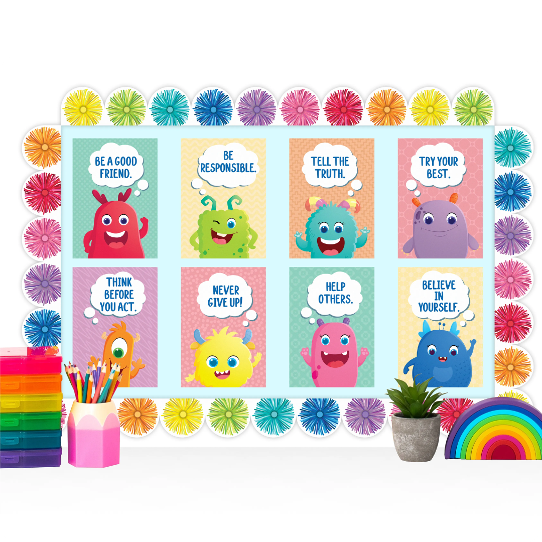 Encourage positive behaviour, resilience, and strong values with the Giggle & Grow Character Traits Poster Set. This vibrant collection of 8 A4 posters features playful monster characters paired with clear, empowering messages that help children build kindness, responsibility, honesty, and perseverance.