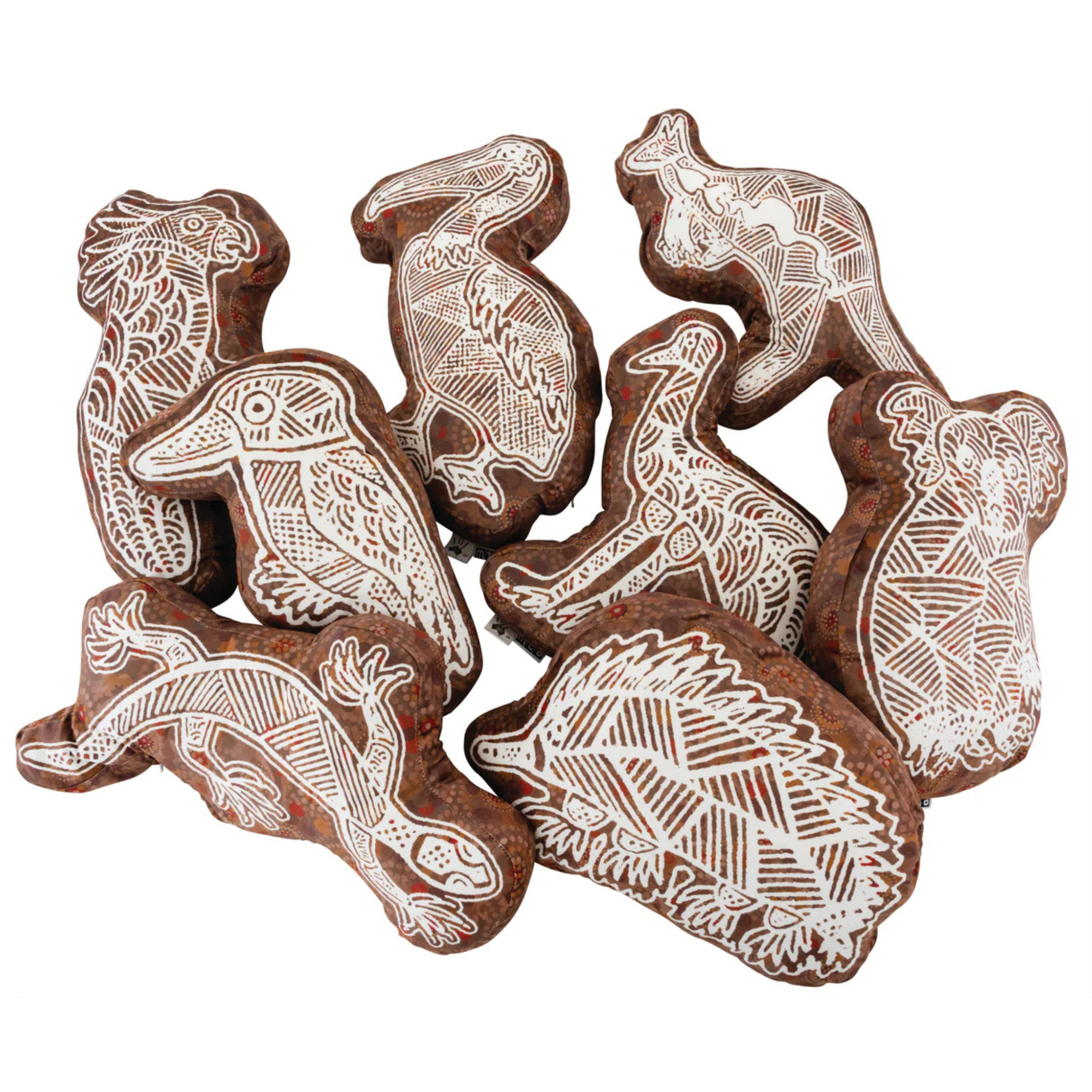 Bring the richness of the Australian bush and First Nations storytelling into your learning environment with the Gumbula Indigenous Land Animal Cushions – Set of 8. Created by esteemed Indigenous artist and Cultural Ambassador Uncle John Smith Gumbula, this collection celebrates eight iconic land animals through authentic Aboriginal artwork and cultural symbolism.