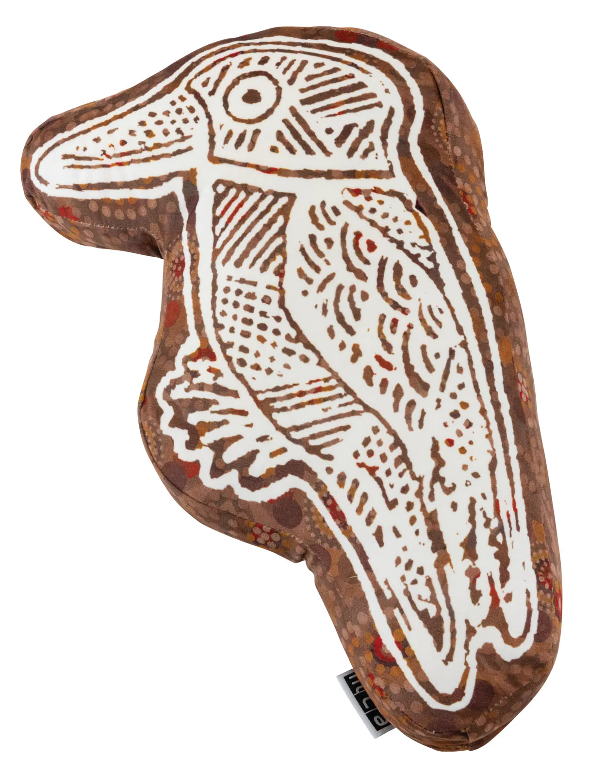 Featuring the Koala (45cm), Emu (40cm), Pelican (46cm), Kangaroo (47cm), Kookaburra (40cm), Echidna (43cm), Cockatoo (47cm), and Goanna (50cm), each cushion represents the deep connection between animals, Country, culture, and community. The designs reflect traditional storytelling and ecological knowledge, inspiring meaningful conversations about biodiversity, identity, and the interwoven relationship between people and the natural world.