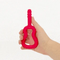 With a long extension that comfortably reaches the back molars, this chew is ideal for those who seek deeper proprioceptive input through the jaw. The smooth circular loop is easy to hold, while the raised bumps and ridges along the stem mimic guitar strings and knobs - adding satisfying tactile feedback with every chew.