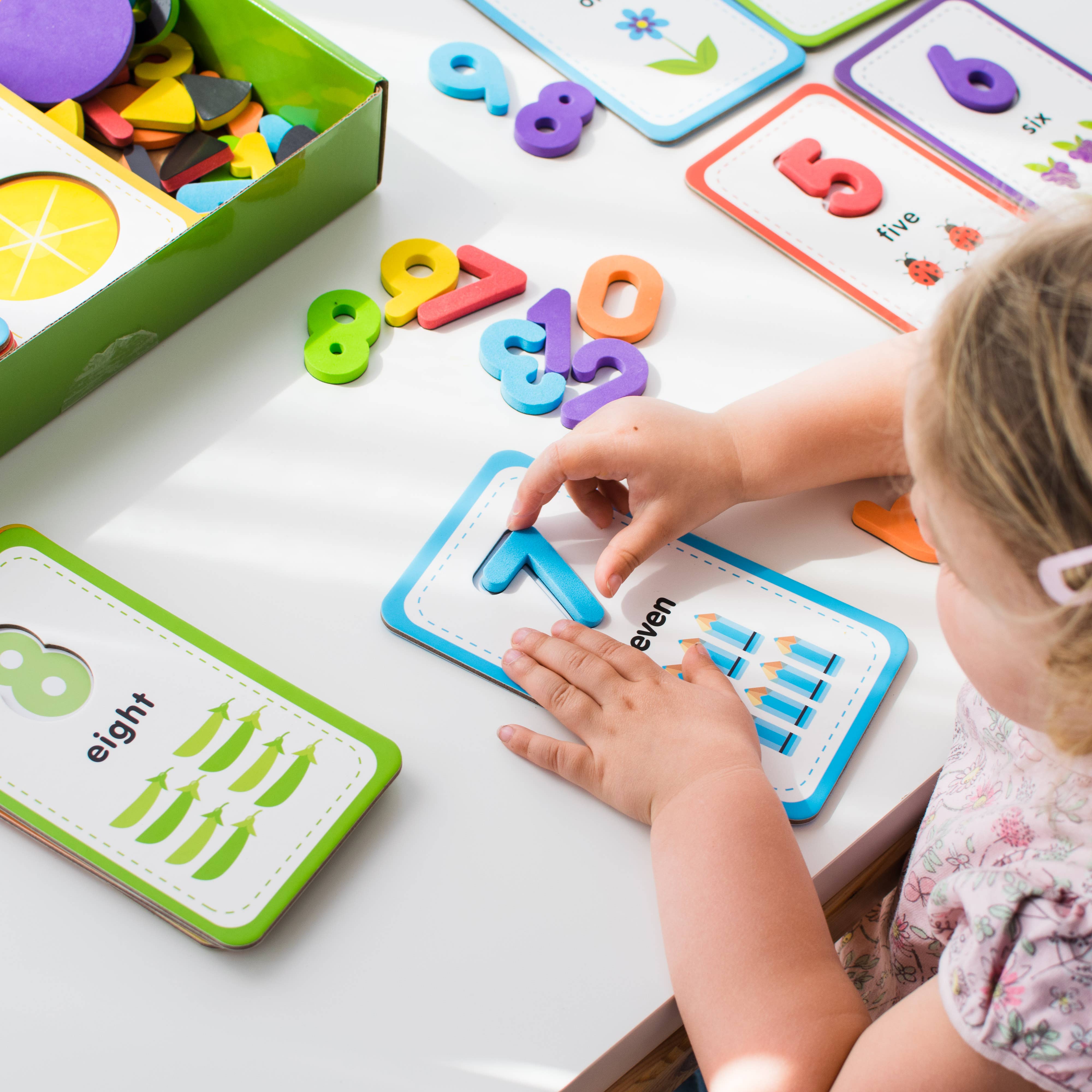From matching magnets to tracing numbers and talking about fractions, every card helps build real-world understanding through play. Designed with durability and delight in mind, this set grows with your child from early number recognition right through to early maths skills.