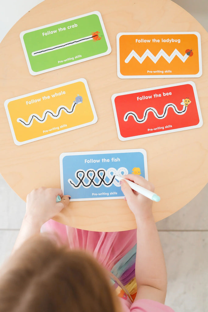 Pre-Writing Practice Cards: Follow friendly animals along traceable paths to build pre-writing confidence.