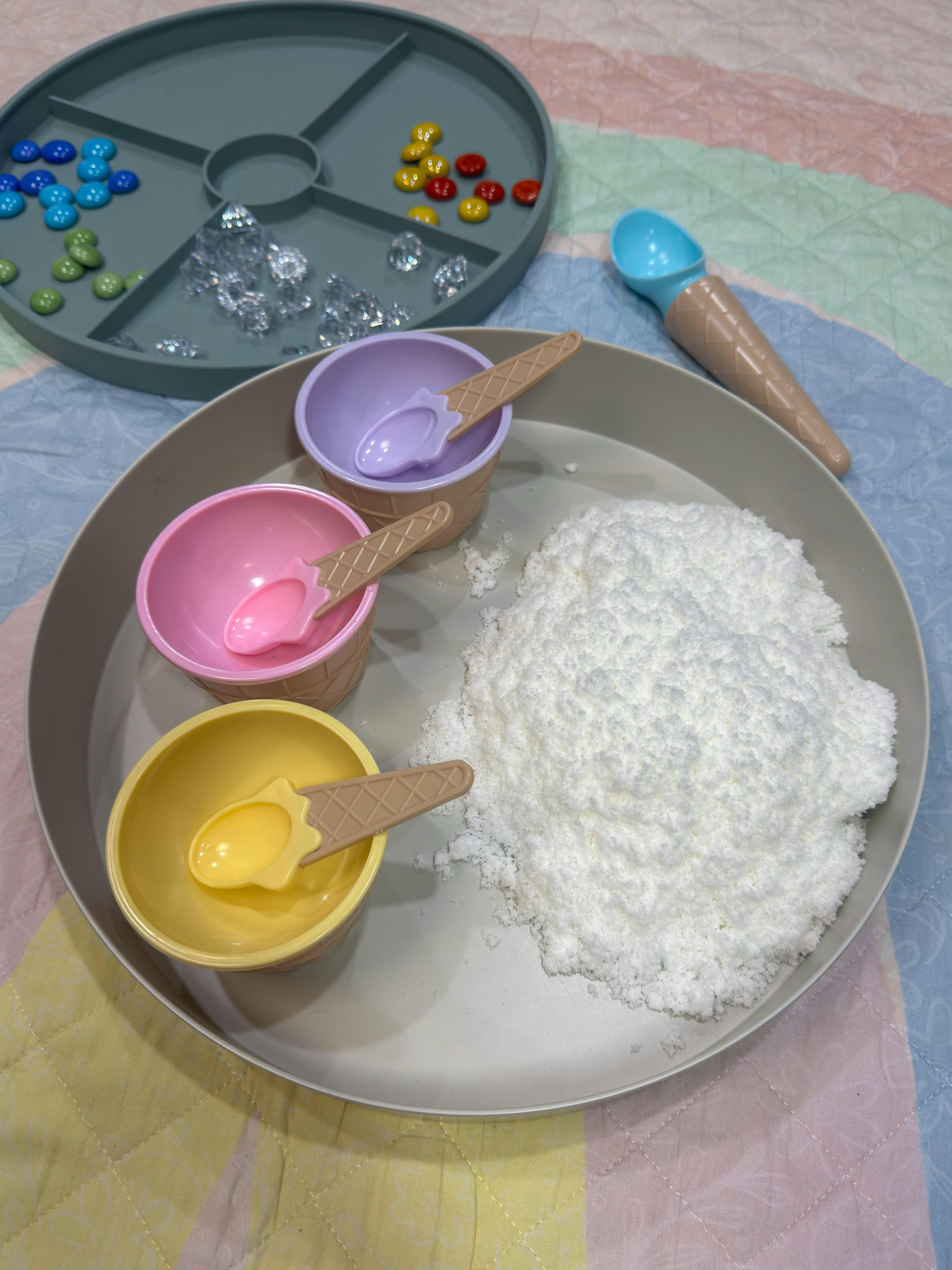 Our Sensory Snow is non-toxic, but is not made for consumption. It is not recommended for children under 3 years of age, or children who still mouth items. Supervision is required at all times.